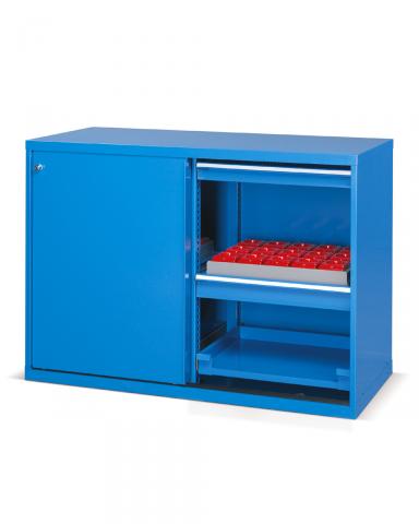 STANDARD típusú tolóajtós szekrény kiegészítőkkel szerszámtartók nélkül - EH=36X27 4 fiókkal - DIM. MM W=1431 D=632 H=1000
