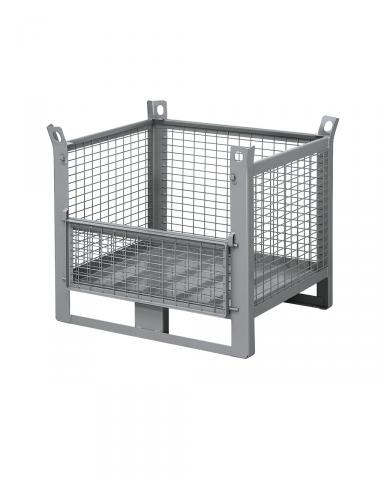 Rácsos konténer lenyitható oldallal - DIM. MM W=1200 D=800 H=800 - Szín: szürke RAL7000