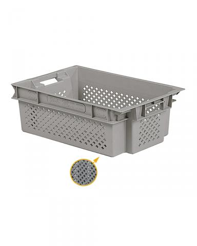MINERVA műanyag láda 4620B perforált fenéklappal - DIM. MM W=600 D=400 H=200 - Szín: szürke